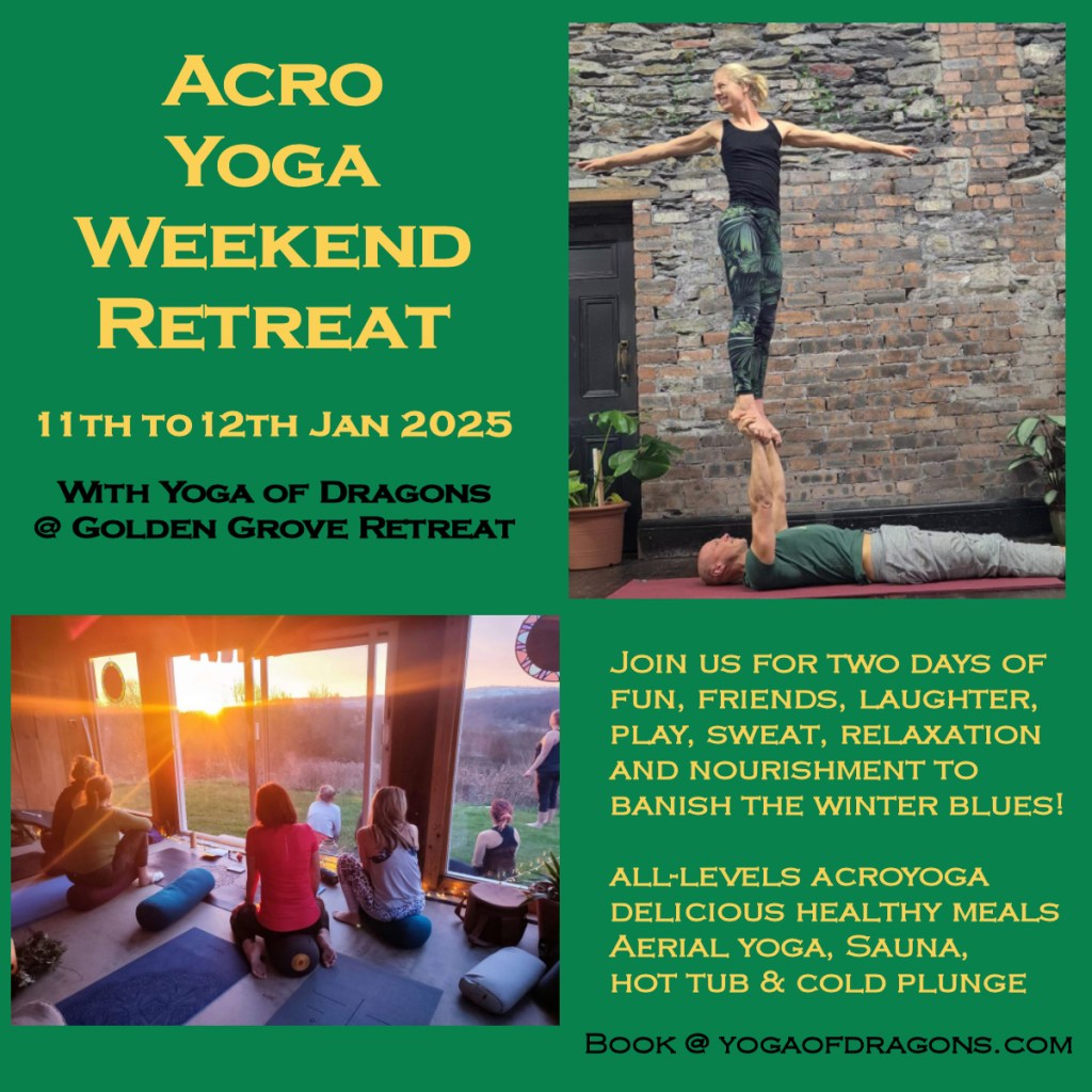 Kick off the New Year with a wholesome adventure! Join us for a weekend filled with movement, new friends, nutritious food, laughter, relaxation, and play. We’ll be nestled for two days in the beautiful hills between Carmarthen and Llandeilo, immersing ourselves in acroyoga and other delightful activities. Last year’s day retreat was such an incredible experience with this amazing group that we decided to double the fun—allowing us even more time to fully enjoy everything together. 🙂
